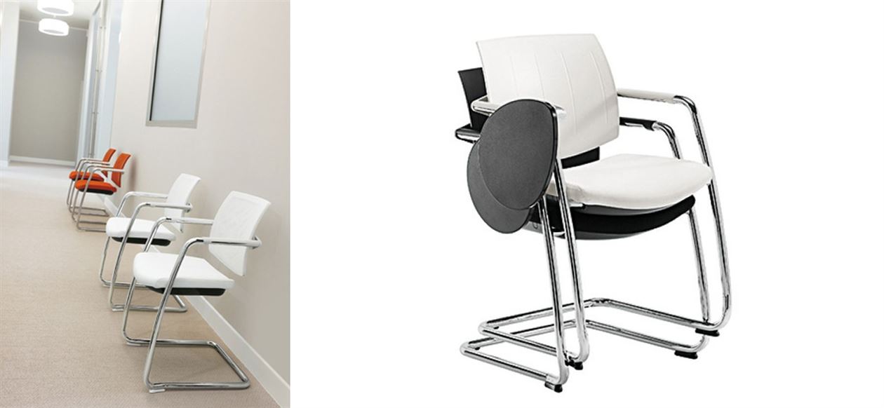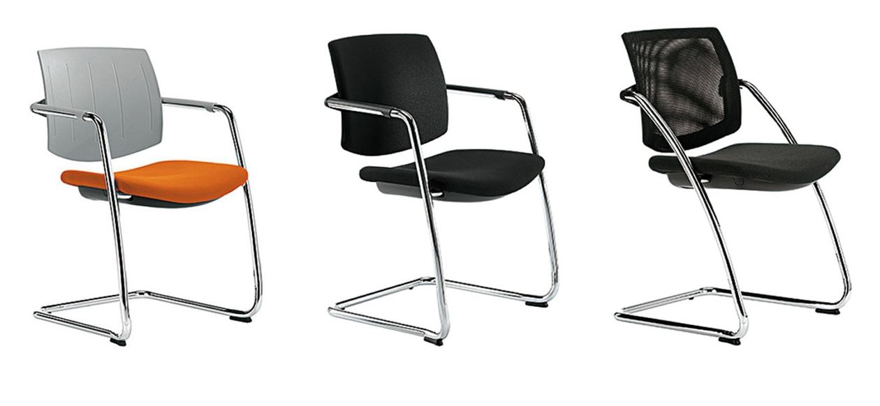 A cantilever base chair for visitors, meetings and waiting areas, Q-Easy, with or without armrests, has an upholstered seat with a protective pad.
